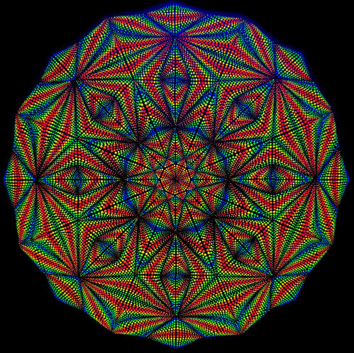 Je crée des mandalas à la fois « classiques » et des mandalas qui révèlent des illusions d'optique, impliquant du relief, de la profondeur, et des effets de mouvement, que je nomme « dimension ». Chaque mandala est réalisé à la peinture acrylique, en pointillisme entièrement fait à la main. Chaque point, sans exception, est soigneusement renforcé ou superposé, créant une texture unique en relief. Mon travail explore le mariage entre la symétrie et l'énergie psychédélique, offrant une nouvelle perspective au spectateur. Au-delà des motifs et des formes dimensionnelles, j’ajoute une projection de lumières variées pour enrichir l'expérience visuelle. Bien que je travaille principalement à la lumière naturelle, j’enrichis mes toiles avec des dimensions visuelles supplémentaires en les concevant pour réagir aux lumières ultraviolettes (UV) et RGB (rouge, vert, bleu). Chaque mandala est conçu à partir de six couleurs de base, intégrant des pigments spécifiques. Ces pigments me permettent de créer une palette harmonieuse qui interagit avec les différents types de lumière. Mon objectif est de créer plusieurs visions à partir d’une seule œuvre, permettant au spectateur de redécouvrir l’art sous différentes formes de lumière.
