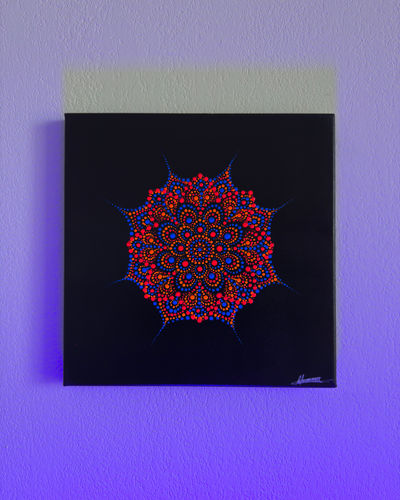 Le début d'une belle aventure artistique. Ce mandala est le premier véritable fruit de mon imagination, réalisé avec des extrémités de pinceau !